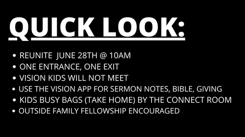 - USE THE VISION APP FOR SERMON NOTES/GIVING/BIBLE